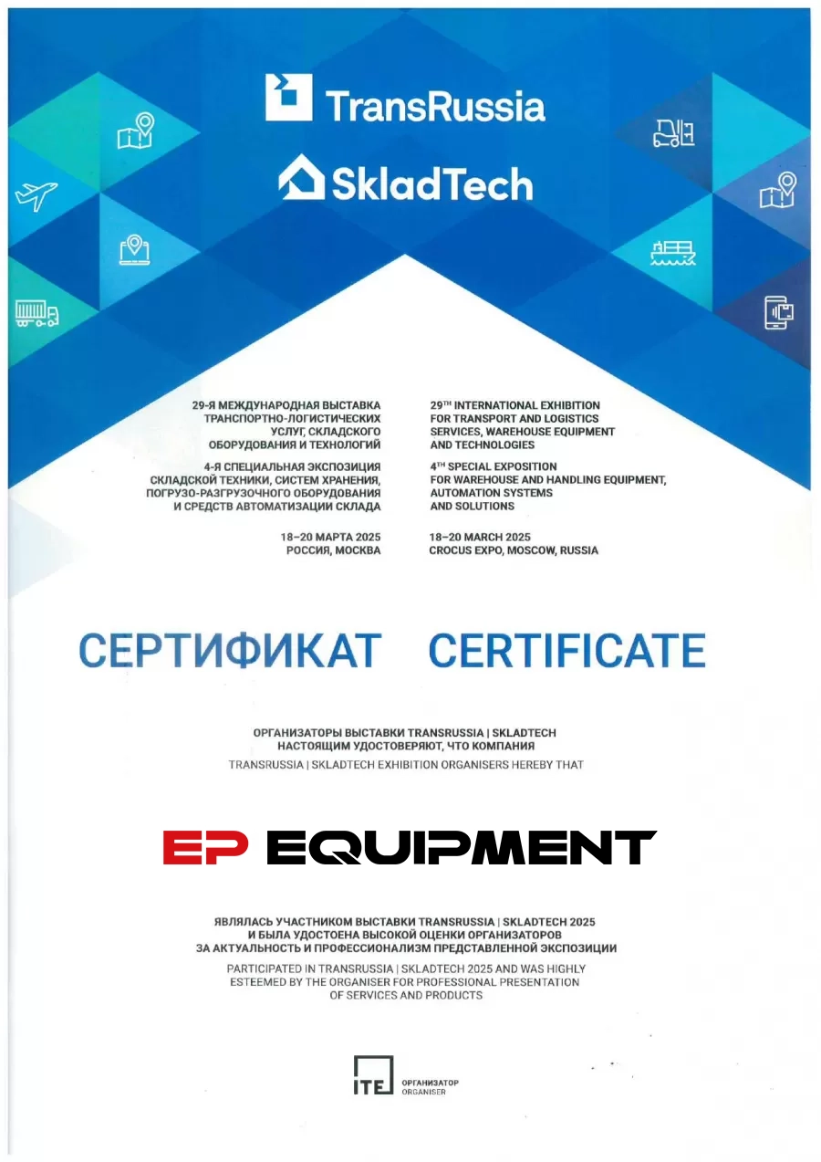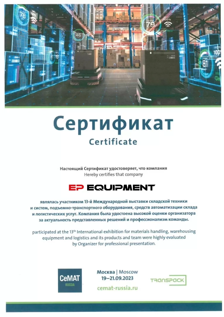 Приобретая складскую технику EP-Equipment у официального дилера, как мы, ваш склад превратится в более организованное, эффективное и автоматизированное пространство, что позволит предотвратить множество проблем и улучшить качество работы.